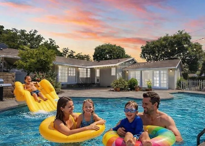Nestled a 10-minute drive from Devonshire Arleta Park, Granada Hills Private Unique Pool Luxury 4Br Family Retreat - Patio, Outdoor Dining, Bbq Grill, & Free Parking Villa Los Angeles entices guests to explore various tourist destinations nearby.